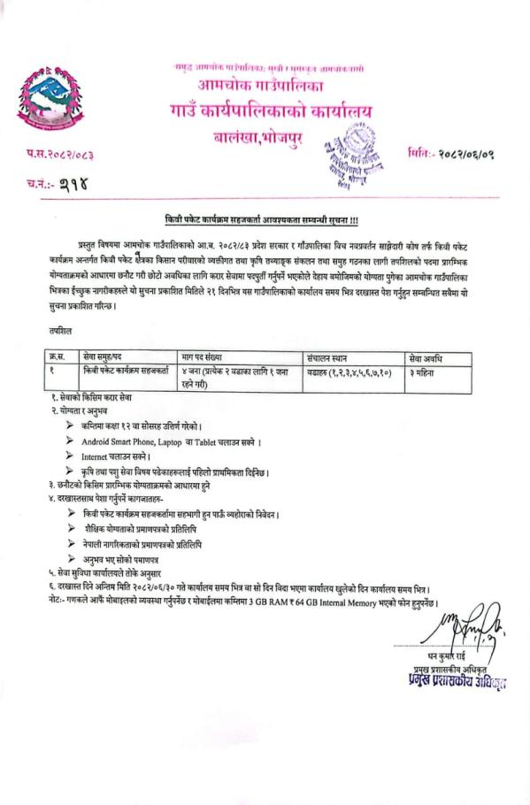 » किवी पकेट कार्यक्रम सहजकर्ता आवश्यकता सम्बन्धी सूचना।